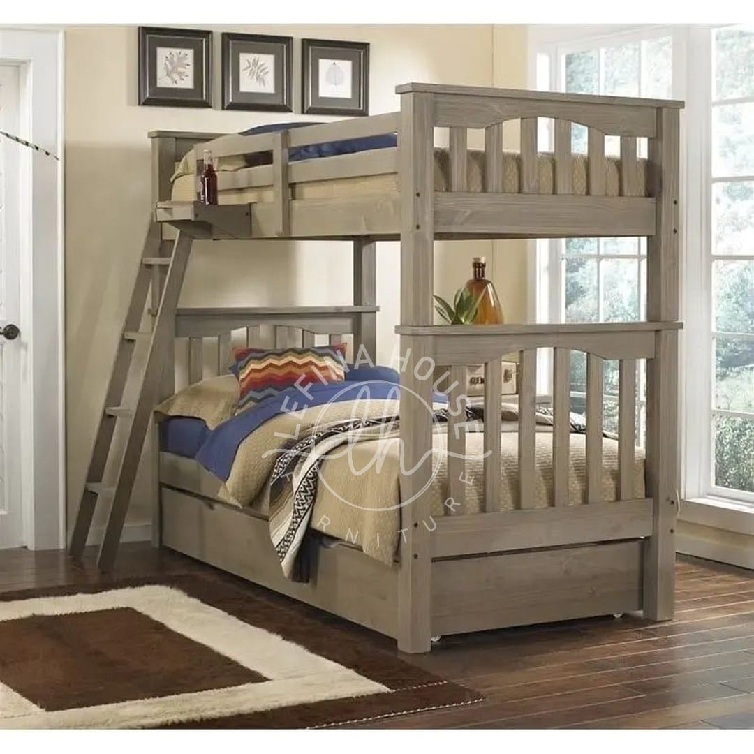 Dengan warna abu-abu natural dan desain simpel, tempat tidur tingkat dengan meja belajar ini cocok untuk kamar anak bergaya minimalis atau modern. Fungsionalitas tinggi membuatnya ideal untuk keluarga yang ingin memaksimalkan ruang tanpa mengurangi kenyamanan.