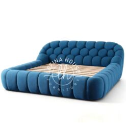 Keunikan tempat tidur upholstery ini terletak pada sandarannya yang super empuk. Desain busa tebal yang artistik (mungkin bergelombang atau panel ‘chunky’) menciptakan tampilan 3D yang dinamis. Ini adalah ranjang unik yang sempurna untuk Anda yang berani tampil beda.