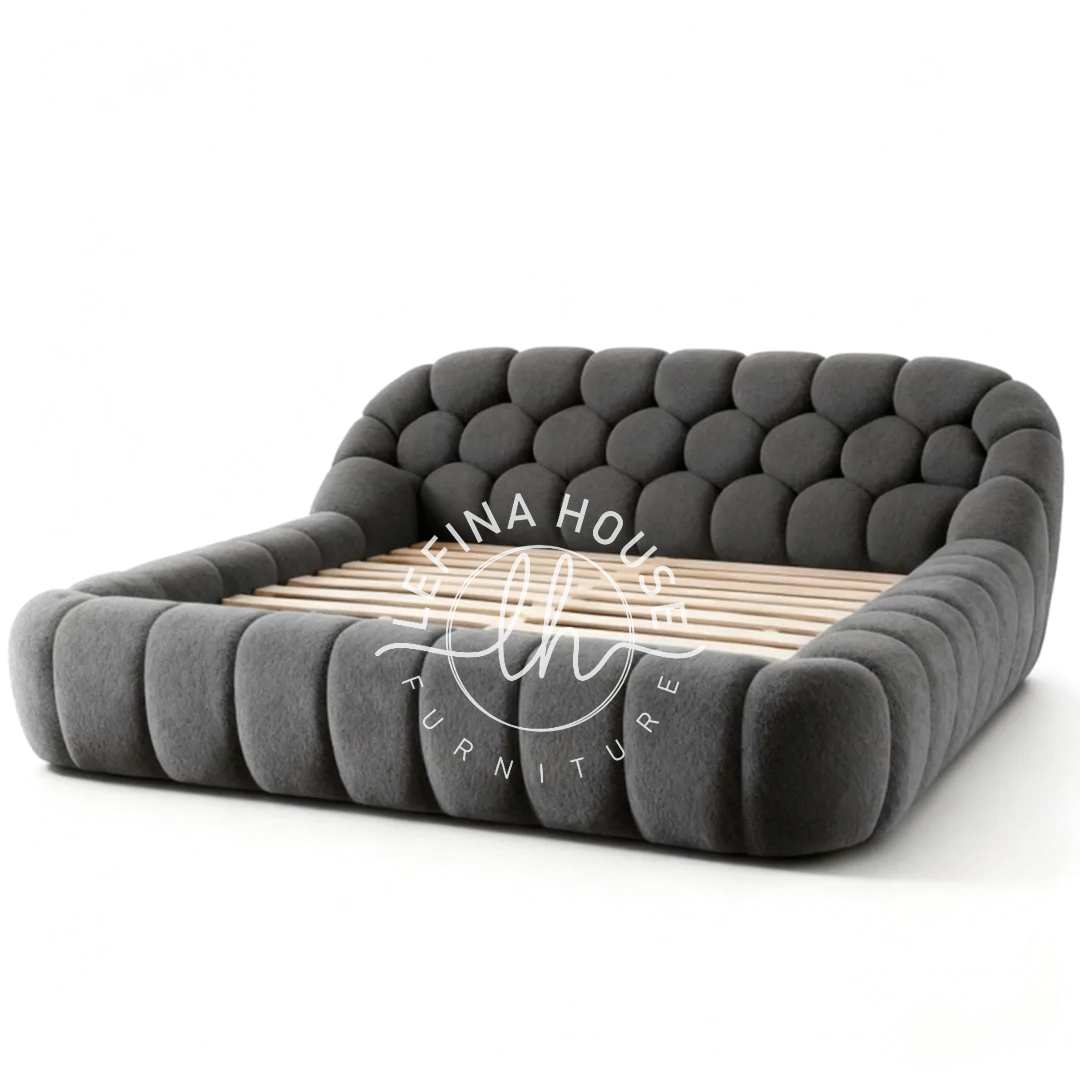 Bosan dengan desain tempat tidur yang ‘flat’ dan biasa saja? Lefina House mempersembahkan Tempat Tidur Upholstery Abu Tua dengan Desain Unik Busa Tebal. Ini adalah ranjang unik yang dirancang sebagai ‘statement piece’ di kamar tidur Anda. Sebuah dipan modern yang tidak hanya memanjakan mata dengan desain artistiknya, tetapi juga memanjakan tubuh dengan kenyamanan maksimal.